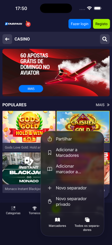 Fair pari Casino e Apostas na app: o que encontras lá dentro