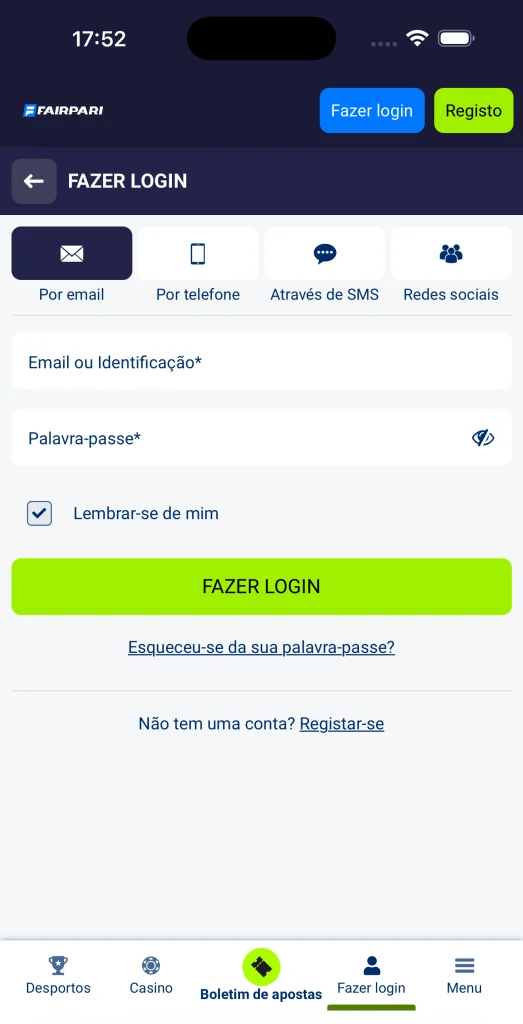 - Entra em Fairpari login